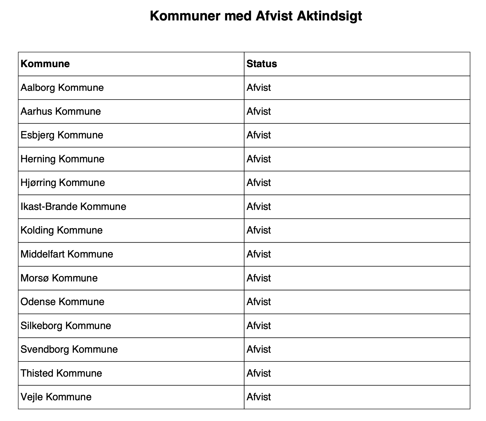 Det mest slående ved resultatet er, at alle de kommuner, der afviste anmodningen, ligger i Jylland og på Fyn. På den anden side gav alle kommuner på Sjælland fuld aktindsigt. Denne geografiske skillelinje rejser spørgsmål om, hvorfor nogle kommuner vælger at nægte aktindsigt, mens andre er fuldt åbne.